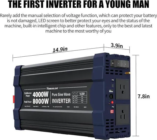 2025 New Upgraded 4000Watts Pure Sine Wave Inverter,Peak Power 8000W DC 12V to 120110V AC Solar Inverter with 2AC Outlets,USB Port,TypeC Port for Truck,RV,Vehicles,Remote Control LED Screen