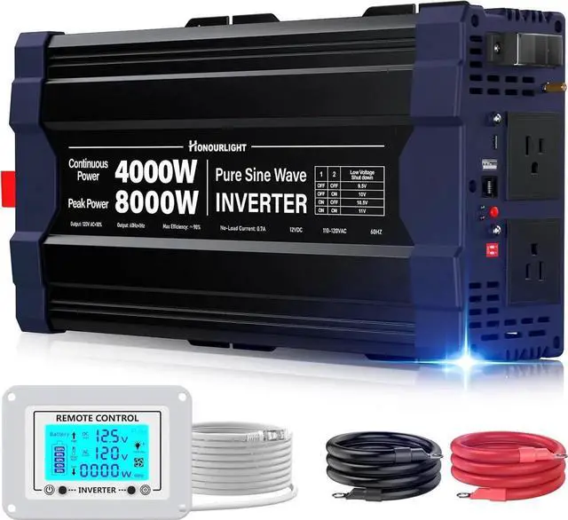 WHAT YOU WLL GET Provide 24 hours friendly customer service. And you will get 1* 4000w pure sine wave inverter, 1* 14.76ft remote controller, 1* instruction manual, 1* pairs of Cables(black and red), 1*wrech, 1*earth wire