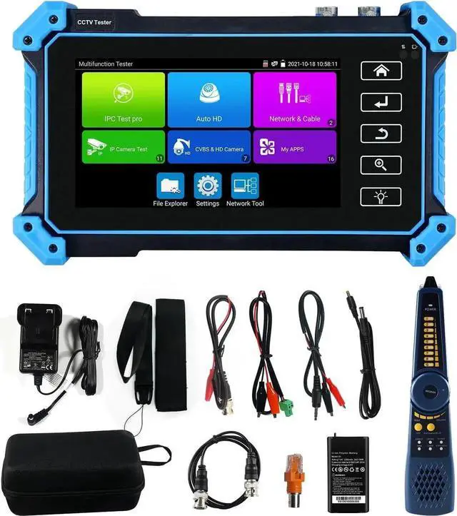 [ IP Analog Camera Tester ] 5.4'' IPS touch screen,IP Discovery/Quick ONVF/IPC test /RTSP play /Client APK.Auto view the video, create testing report.Support batch activate Hik and DH cameras and modify IP address, modify password etc. Self-defined modify channel name. Supports CVBS analog camera test.1 channel BNC input, NTSC/PAL (Auto adapt); PTZ control, RS485 control,