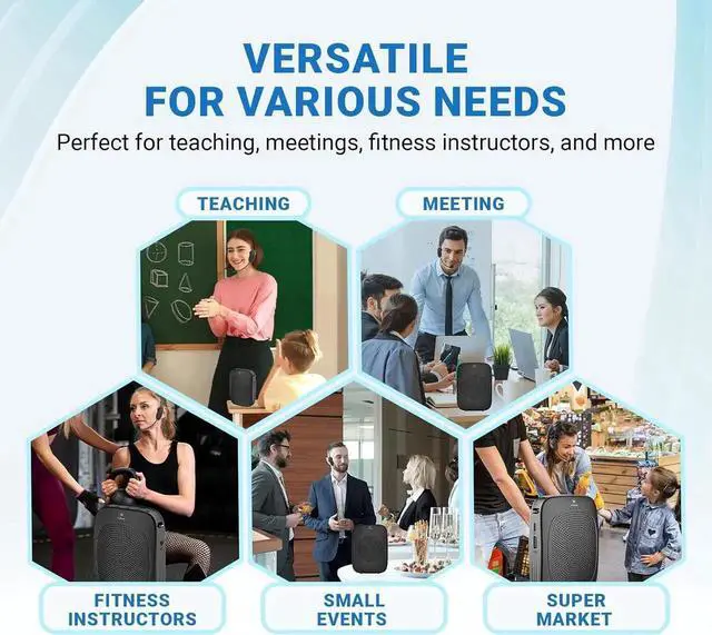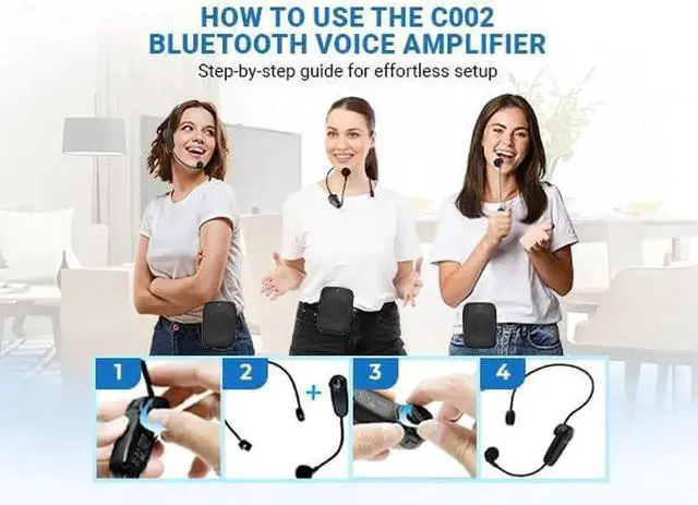 Versatile: The wireless voice amplifier is lightweight and easy to wear. Clip it to your belt or hang it around your neck with the lanyard. The Bluetooth headset is snug and secure, even with long use. The wireless mic can be used as a headset or handheld, adapting to different needs. It detaches easily for tidy storageMultifunctional