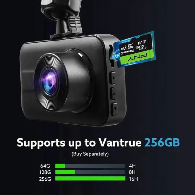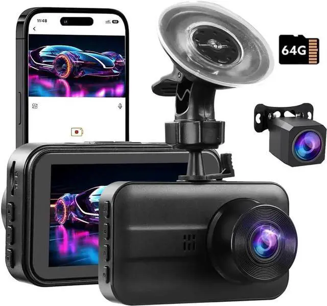 Support 256G Storage: The Car Camera DashCam Front and Rear comes with comes with 64GB card, which is inserted into dash camera, and it supports max up to 256GB memory card