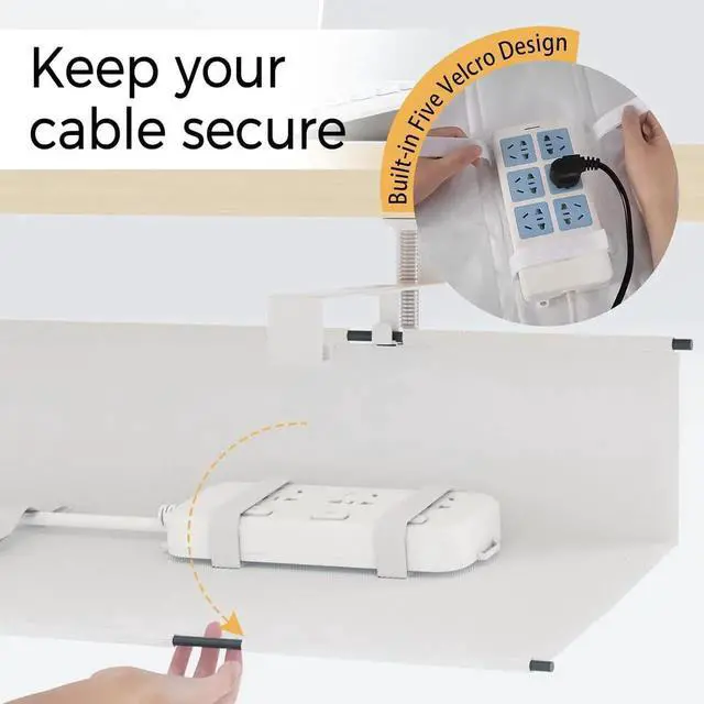 WIDELY APPLICATION: Our desk wire management works with all home office study setups! Our under-desk cable management tray easily holds all cords and power strips. It is a completely organized set of cable trays that keep everything tucked away and out of sight.