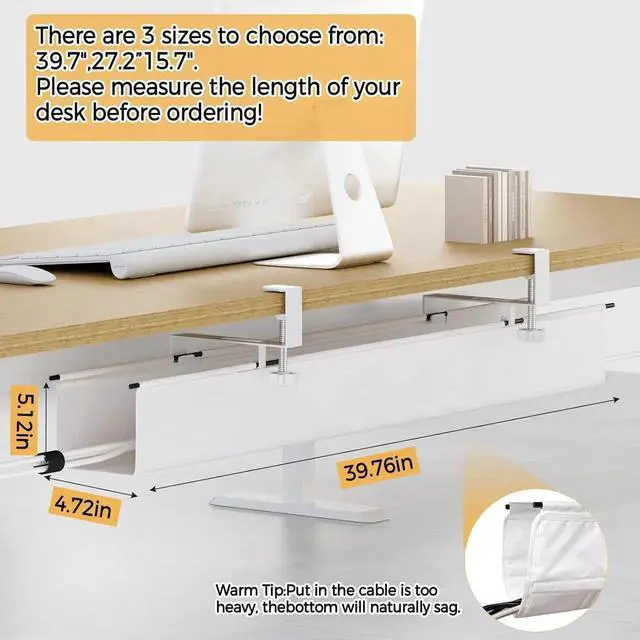 There are 3 sizes to choose from: 39.7 '', 27.2 '', 15.7 '' and 2 colors available: white and black. Please measure the length of your desk before ordering!