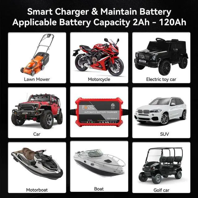 ![Alt view image 6 of 7 - [4-Pack] Fully Automatic Trickle Battery Charger, 1000mA 12V Smart Car Battery Charger, Battery Maintainer, Float Charger for Motorcycle Car Lawn Mower Boat ATV Cell Lead Acid Batteries](https://c1.neweggimages.com/productimage/nb640/C2GMS25122302KUFD09.jpg)
