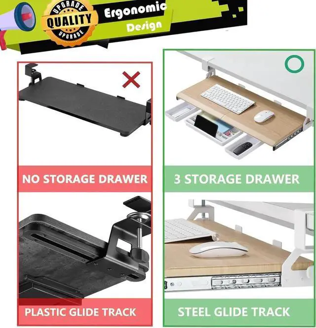 ERGONOMIC KEYBOARD TRAY: Its essential to have the right posture to protect your wrist, arms, neck, and shoulders when youre at your desk. An under desk keyboard tray promotes an optimal typing position. It ensures you sit safely and can protect against neck and shoulder pain, wrist strain, and even RSI