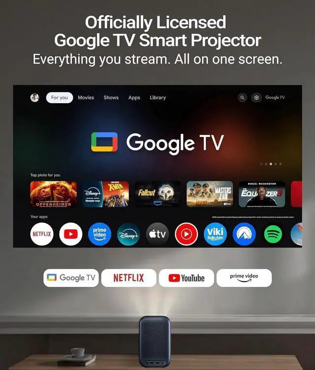 AllPlay Netflix-Licensed Smart Projector with Google TV | Native 1080p Full HD | Auto Focus & Keystone | Dolby Audio | WiFi & Bluetooth | Portable Home Theater Kit