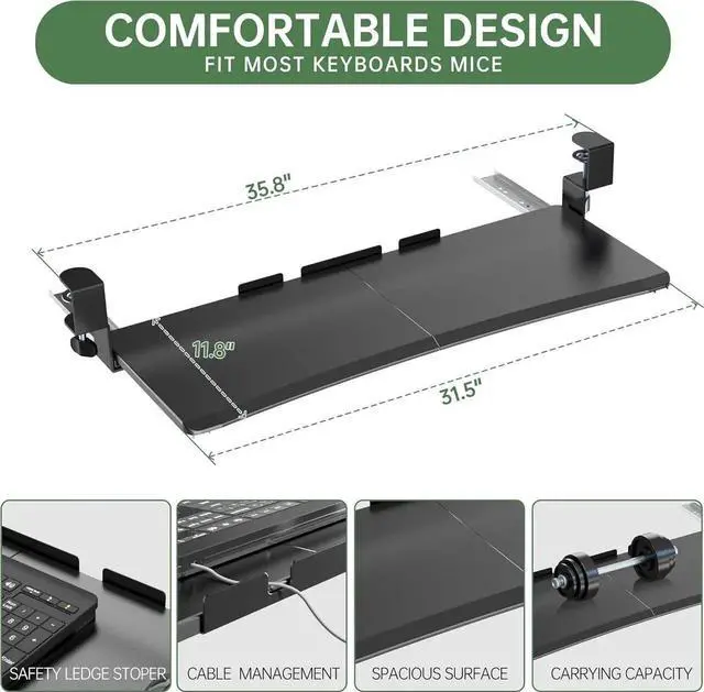 Smooth Sliding Keyboard Tray The under desk keyboard tray slide out design allows the desk drawer to slide smoothly back and forth, using our ball slide-way system, preventing it from accidentally sliding out when fully hidden. Just slide in the keyboard tray under the desktop instead of placing it on the desk while not in use, saving valuable space on your workstation. The powder-coated, rust-resistant design on the frame makes it more durable Wood is a popular choice for beauty & durability.