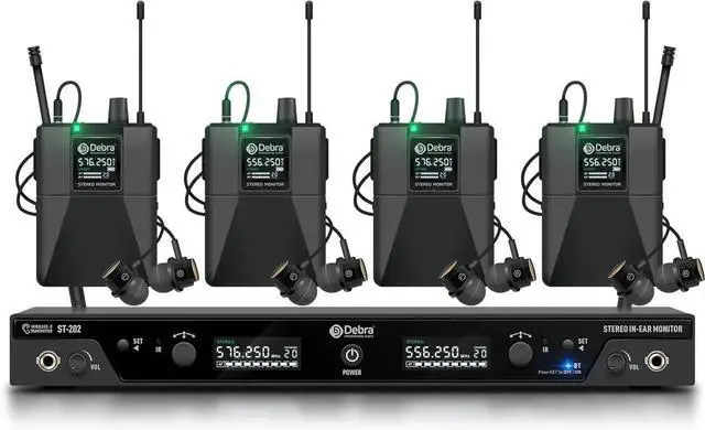 Audio PRO ST-202 UHF Stereo Wireless in Ear Monitor System, Dual Channel Wireless IEM with Monitoring Type for Stage, Receiver for Studio, Guitar, Band Performance (Dual Channel, 4 Bodypack)
