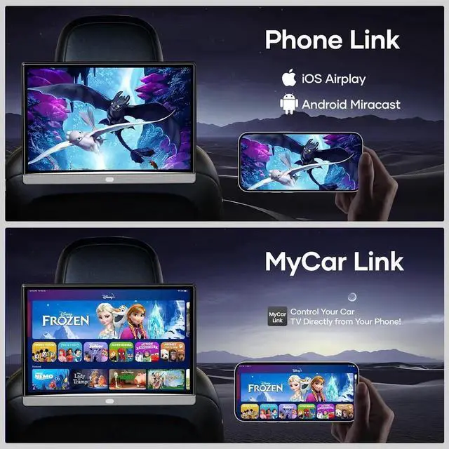 13.3" HD IPS Touchscreen: Features a vibrant 1920x1200 capacitive touch display with 4K playback support. Powered by an advanced multimedia processor and built-in GPU for smooth performance. This portable car player transforms your backseat into an entertainment hub with stunning clarity and responsive touch controlperfect as a headrest car player for long journeys or daily commutes.