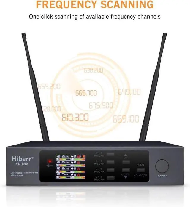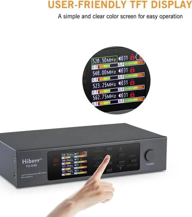 High-Quality Pickup CapsuleYU-E40 wireless microphones for singing, hosting, church services, conferences, and more.falseUser-Friendly TFT DisplayIt is a simple and easy-to-use wireless microphone system.falseVersatile CompatibilityYU-E40 Wireless microphones for karaoke, mixers, computers, phoes, cameras, etc.false