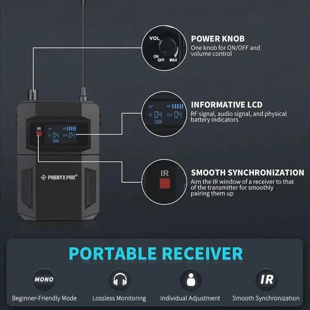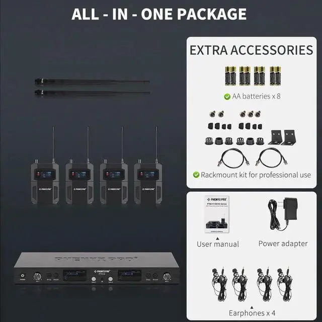MONO MONITORING: Immerse in crisp mono audio with our wireless in-ear monitor system. Mono monitoring of the wireless IEM system eliminates phase issues that can cause blurring or distortion in stereo systems, ensuring clear, focused audio output. The mono in ear monitor system provides consistent sound, simplified setup, and improved signal stability, making it an ideal choice for professionals like church pastors, conference hosts, broadcasters, and live performers who require reliable audio monitoringDAISY CHAIN CONNECTION: The dual channel in ear monitor wireless provides two groups of left/right inputs and loop outputs to handle diversified monitoring requirements. The LOOP OUT left/right jacks of the sistema de monitoreo in ear allow the signal to be daisy-chained to additional channels, enabling seamless audio monitoring sharing among bandmates. This integrated monitor station offers you a flexible and versatile monitoring experience
