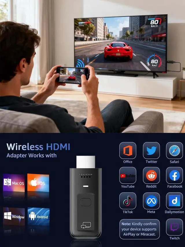 Wide Coatibility Across Devices: Weighing only 0.1 lbs, the Wireless HDMI is coact and lightweight, making it perfect for travel, business meetings, and creative work. Enjoy seamless, high-quality wireless HDMI connectivity across a variety of devices, including PCs, laptops, cameras, TVs, TV es, projectors, monitors, and HDTVswherever you go.
