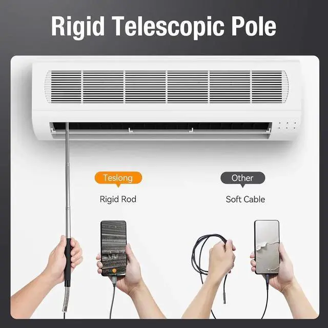 Versa Application Suitability: The telescoping borescope is designed for a wide range of professional inspections, including automotive maintenance, wall cavity inspections, plumbing pipe checks, and HVAC system examinations. It offers clear visibility and practicality, making it an ideal tool for various scenarios within different industries.