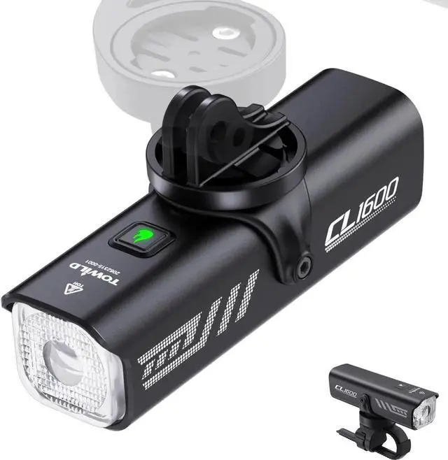 Durability and Quality - Built in a tough aluminum alloy shell, the CL1600 bike light is built for durability. With a IPX6 waterproof rating, it stands up to the elements, ensuring it lasts through all your cycling adventuresfalsePacking List And 2-Years Guarantee - 1*Bike Light, 1*bicycle light mount, 1*Compatible Base for Gopro, 1*Type-C Cable, 1*Manualfalse- 1600 Lumens Brilliance - The CL1600 bike light illuminates your path brightly with maximum brightness of 1600 lumens, makes you ride with confidence. Easily spot obstacles, ensuring excellent visibility and safety during nighttime rides or in low-light conditions
