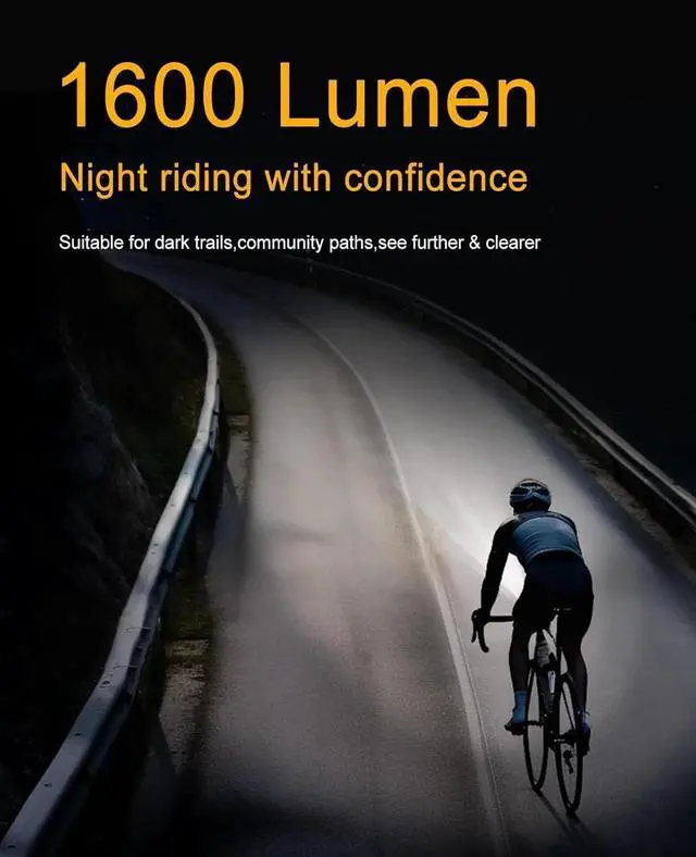 - Recharageable Bike Light - This CL1600 bicycle light is equipped with a 5000 mAh ultra-large capacity battery that can run for 2 hours even at the highest lumen of 1600 lumens and 4.5 hours at 600 lumens. C-type charging port for easy and fast charging