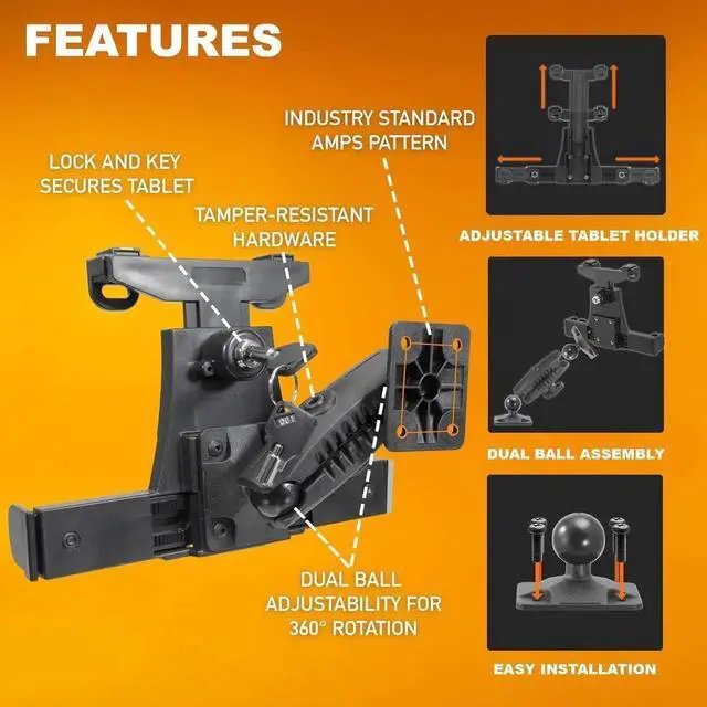 VERSATILE WALL & VEHICLE MOUNTING Easily install your tablet on walls, desks, or flat surfaces using the included drill base. Compatible with vehicle-specific brackets that use the AMPS mounting pattern, making it perfect for custom truck dashboards, fleet vehicles, and wall-mounted setups.