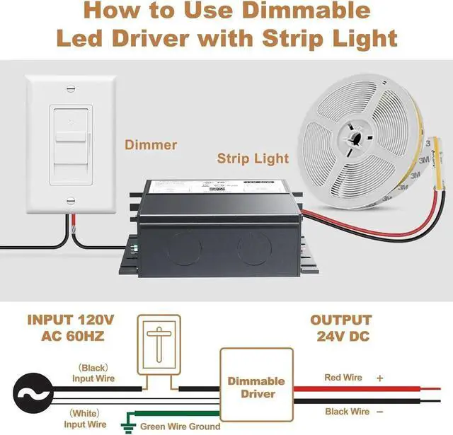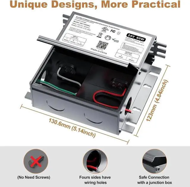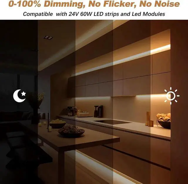 Safety & High quality dimming: Our 24V 60W dimmable transformer is one of the safest transformers on the market. Designed with full protection metal case, for dry, damp, wet location. Built-in protections include Short Circuit/Over Loading/ Over Temperature protection. Its cooling system prevents overheating and re hazards, and with no buzzing noise, you can enjoy worry-free dimming for your LED lights.
