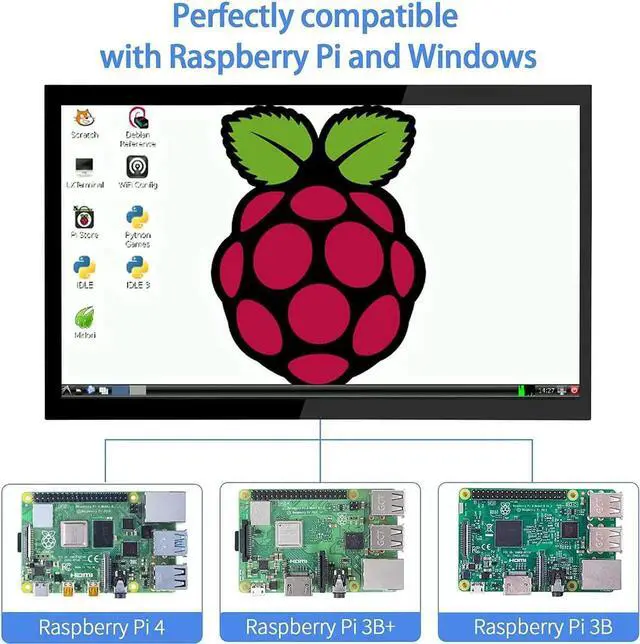 - Plug-n-play Raspberry Pi Display -- Simply connect the screen to device via HDMI interface and power the USB touch port to achieve touch function and no need to install any driver. The monitor is fairly standard in size and shape without manual calibration. The screen resolution can also be adjusted setting according to the user's requirements.