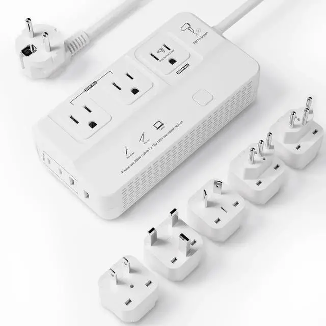 Once: Equipped with 3 AC outlets and 4 USB port (including USB-C), allowing 7 devices to charge together, one converter that does it all for phone, tts, cameras, and travel gear. Stay productive and connected whether you're on vacation or a business trip, Streamline your travel bag.