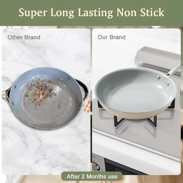 Versatile Cooking Options: Whether youre preparing breakfast eggs, sautéing vegetables, or searing meats, our skillet is perfect for all types of cooking. Its versatility makes it a valuable addition to your pan set, suitable for any meal of the day.