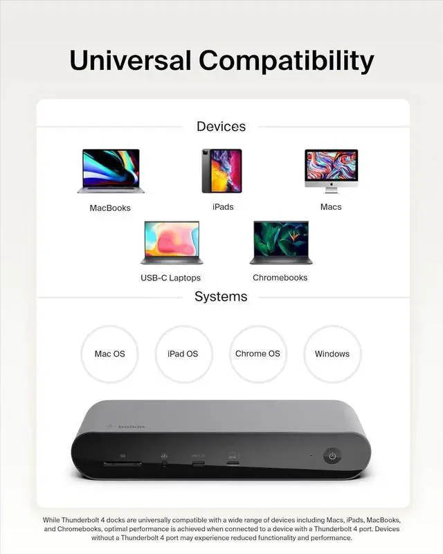 SUPER-CONNECTED: Create the ultimate work station with the Thunderbolt 4 Docking Station. This smart dock is compatible with Mac and Windows, and supports up to 3 extended displays.