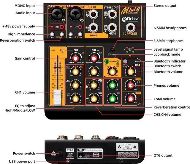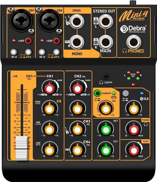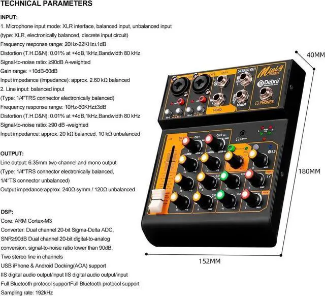 This lightweight DJ Console has 48V phantom power supply. The stable voltage doubling filter circuit can effectively filter the interference of the signal, making the sound more clear and delicate. It supports wired/wireless/condenser microphone input. falseThis mini sound mixing console has strong compatibility. It can be connected to a variety of devices for use, such
