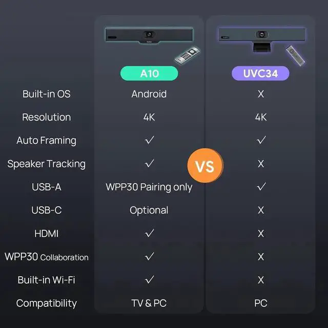4K 30FPS Webcam - UVC34 built-in 120° wide-angle webcam, everyone in the conference room can be seen in the screen, without adjusting the camera, which is effectively reducing manual adjustments during the meeting, and make meetings more convenient.