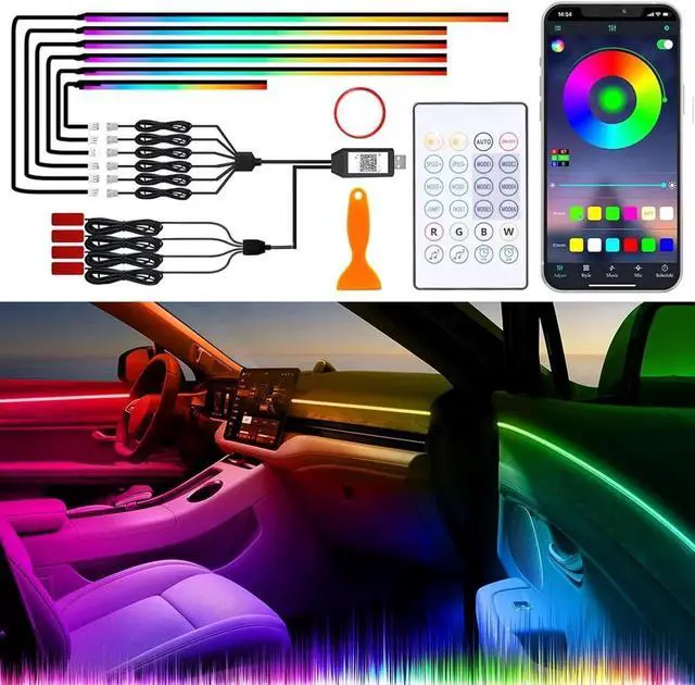 [Wide Application] The usb car lights is suitable for all cars, trucks, SUVs, Jeeps and other vehicles. Our car led lights enhance night driving experience and create a romantic atmosphere. You will receive 1 x 10 in 1 acrylic car light with button, 1 x remote control, 1 x double-sided tape, 1 x pry tool, 1x user manual.