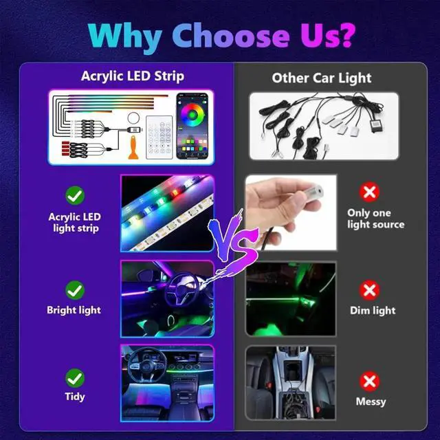 What types of cars do the acrylic strips fit? Should theoretically work with any car, as long as you have gaps in the trim to push the lights in, or stick it on with the supplied double sided tape.
