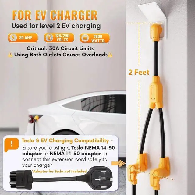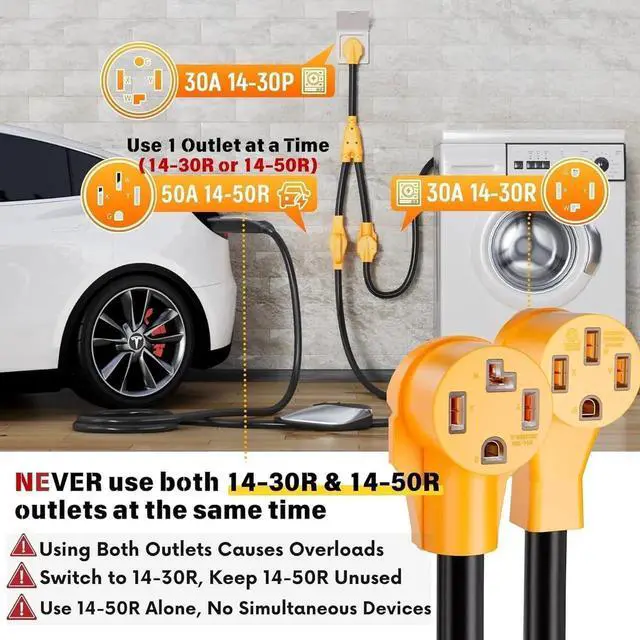 Must-Read for EV OwnersSET TO 24A! The 14-50R outlet on this adapter provides max 30A input, not 50A; MUST set your Tesla mobile connector or other EVSE charger to 24A max for safe, successful charging - Higher settings cause failure