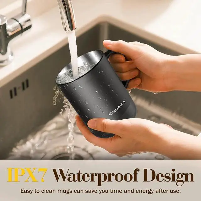 PREMIUM CRAFTSMANSHIP Featuring a sleek ceramic matte nish, this mug is built with a durable stainless-steel core. Its patented, ergonomically designed shape and handle provide a comfortable grip. Perfect for use at home, in the ofce, or your home ofce.