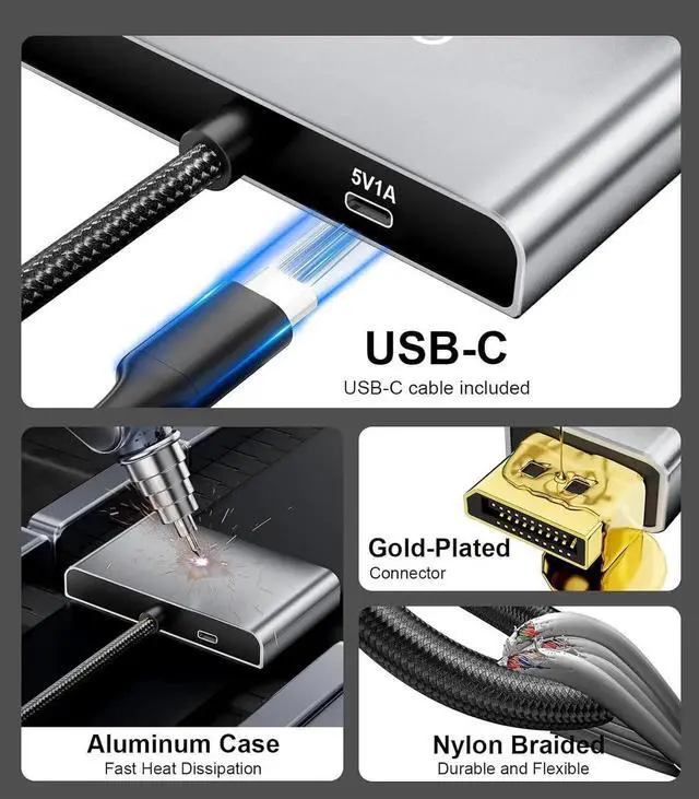 Stable Transmission, Unique DesignThis Displayport Splitter is made of nylon braided cable, gold-plated connectors and 28AWG tinned copper cable, which ensures the signal transmission is stable, no need to worry about splash screen, ghosting, and audio/video synchronization problems. Meanwhile, the aluminum alloy is used to dissipate heat stably and prolong the product life, bringing users a silky smooth gaming and viewing experience, thus improving your efficiency and creating more value for you