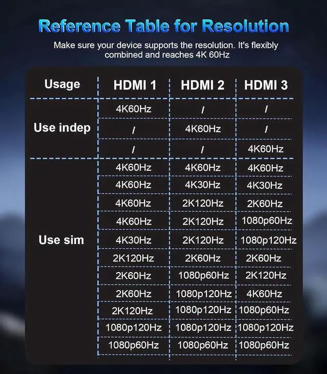 DP to 3HDMI Adapter 4K@60Hz The DP to 3HDMI Adapter 4K@60Hz brings a clear and smooth visual experience just like high-definition wireless screen projection. Whether you are immersed in wonderful movies and TV shows or conducting professional demonstrations, it can fully meet the strict requirements for excellent image quality. In terms of resolution, a single port supports up to 8K@30Hz, and when two or three ports are used simultaneously, it can stably reach 4K@60Hz. However, this has certain requirements for the graphics card configuration. If all three ports are enabled simultaneously, the graphics card bandwidth needs to reach 36Gbps.