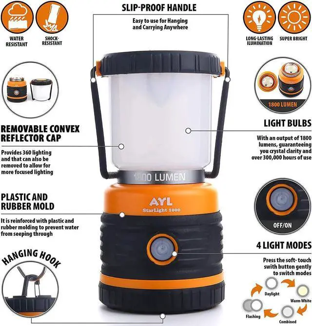 This LED flashlight can also help light up your patio or backyard during winters! false- BRIGHT LED BULBS- This camping lantern is fitted with 46 LED light bulbs to deliver an extremely high 1800 lumens. to deliver an extremely high 1800 lumens. As we now know, LED light bulbs are some of the best light bulbs in the industry when it comes to brightness, energy-saving and low energy consumption, as well as longevity.