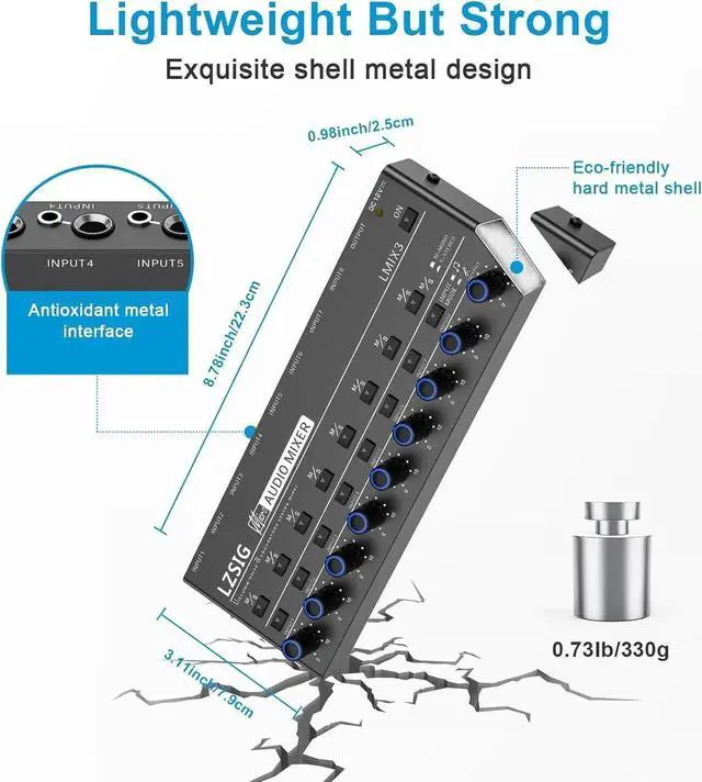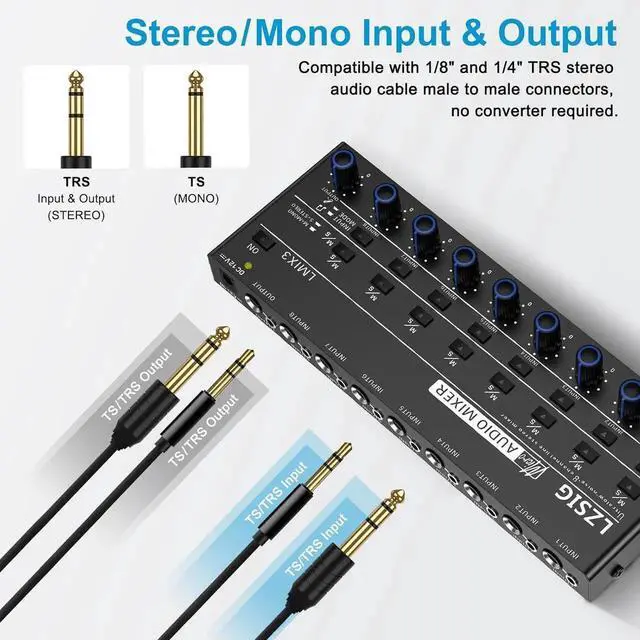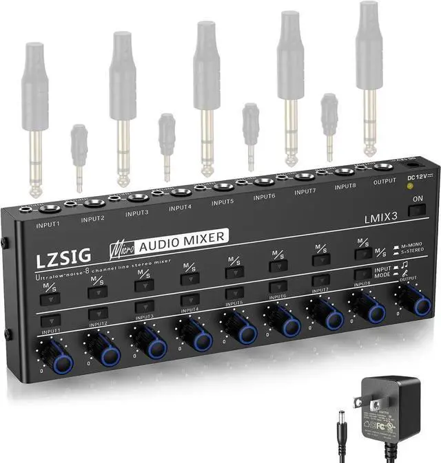 - LOW-NOISE: LZSIG mini audio mixer has been upgraded to use a 12V adapter for the power supply, Add a MPS power management chip to fix the issue of grounding noise.. Equipped with 10 ROHM low-noise and high-quality operational amplifiers, it guarantees the highest sound quality, ultra-low noise, and distortion-free performance