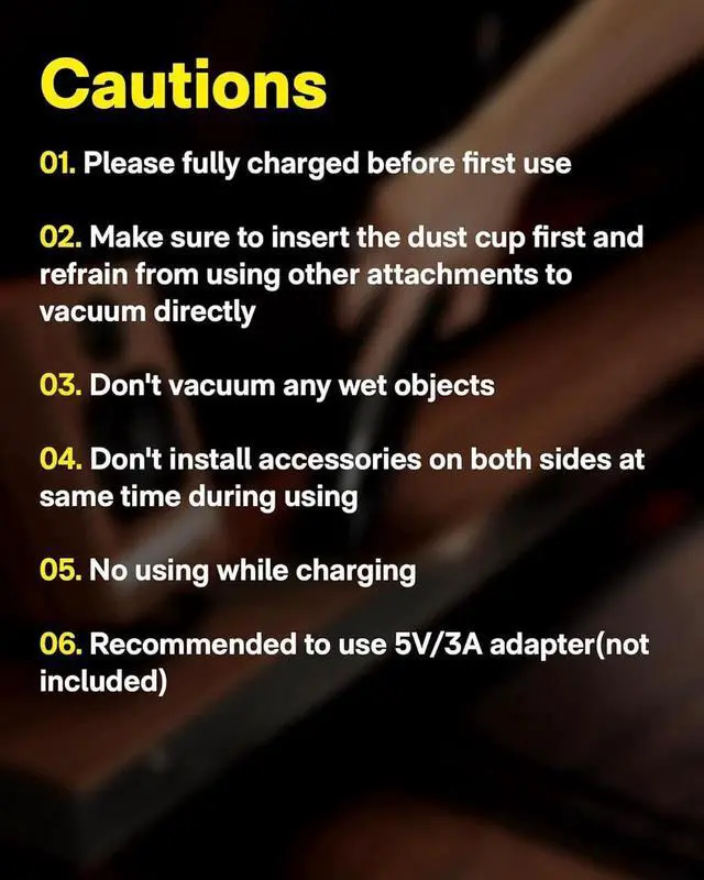Please install the dust collection cup when using vacuuming mode; Don't use vacuuming and blowing modes simultaneously.