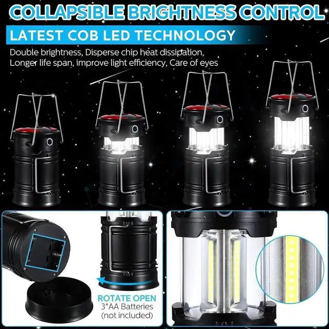 - Compact and Lightweight: the camping lights and lanterns measures about 5.47 inches/ 13.9 cm in length and 3.54 inches/ 9 cm in diameter when folded, suitable size for easy storage and portability, easily pack it in your backpack while camping or hiking, each lantern operates with 3 AA batteries, batteries not included