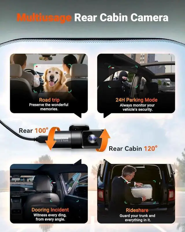 [ Next-gen 2.5K Rear Camera ] Featuring a premium IMX675 sensor with HDR processing, our 2.5K rear camera delivers 1.5X sharper footage than standard 1080P systemsproviding critical evidence in rear-end collision scenarios. The exclusive rear cabin camera with IMX662 sensor offers enhanced light sensitivity, capturing clear details throughout the trunk, back seat, and side windowsperfect for monitoring children, pets, and valuable cargo.