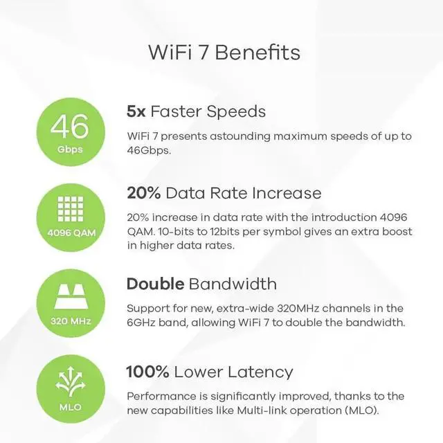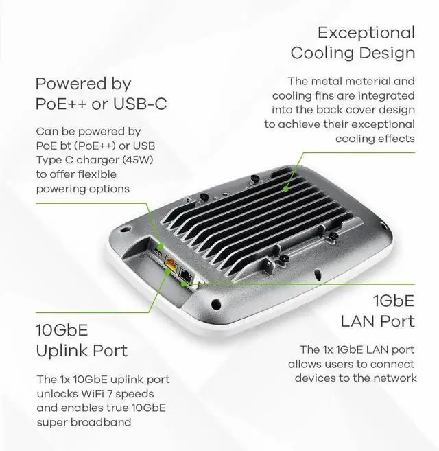WiFi 7 The Next WiFi RevolutionFeaturing the powerfulQualcomm quad-core CPU and a robust hardware build, the WBE660S is equippedwith advanced WiFi 7 capabilities, including 4K QAM, 320MHz, MLO, andMulti-RU Puncturing, to provide higher capacity, lower latency, and extendedrange. Power. Secure. Wireless. Designed with thedurable hardware and fortified cybersecurity features, the WBE660S accesspoint empowers users to harness the utmost potential of the novel WiFi 7advancements, delivering lightning-fast speeds while also offering enhancedprotection against escalating cyber-attacks and risks.