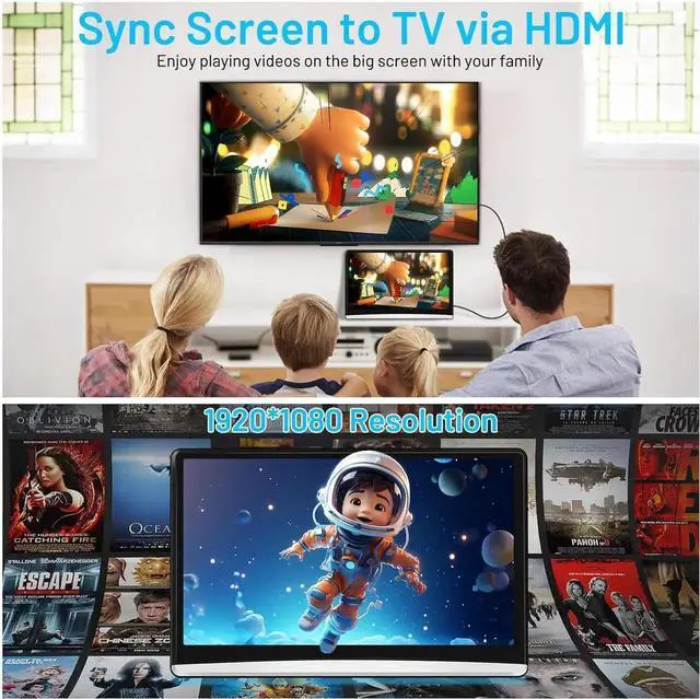 Tip: The mobile phone and car TV must be connected to the same wifi networkMulti-Port CompatibleRear seat car TV with HDMI input, HDMI output, USB, TF and 3.5 mm headphone jack, compatible with PS4/PS5/iPad/computer/projector/USB disk/headphones/external speakers and other devices. When a family is traveling in a car, the two headrest car players can play different movies for the children, or they can play the same movie through an HDMI cable connection