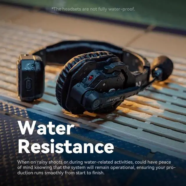 Superior Sound & Water and Wind ResistanceFeaturing a Signal-to-Noise Ratio of 70dB, Solidcom SE boasts advanced dual-mic ENC that processes sound in a way cancels out environmental noise, ensuring your voice comes through loud and clear even in noisy surroundings. And the system feature water and wind resistance. An advanced algorithm effectively reduces wind noise while internal protective paint prevents water penetration. You can have peace of mind on rainy or windy shootsHassle-Free Operation & Lighter. Cleaner. Cozier. Solidcom SE is ready to use right out of the box. The system features a moveable microphone boom for control of talking and a latching design that allows you to switch between mute and talk with just one press.