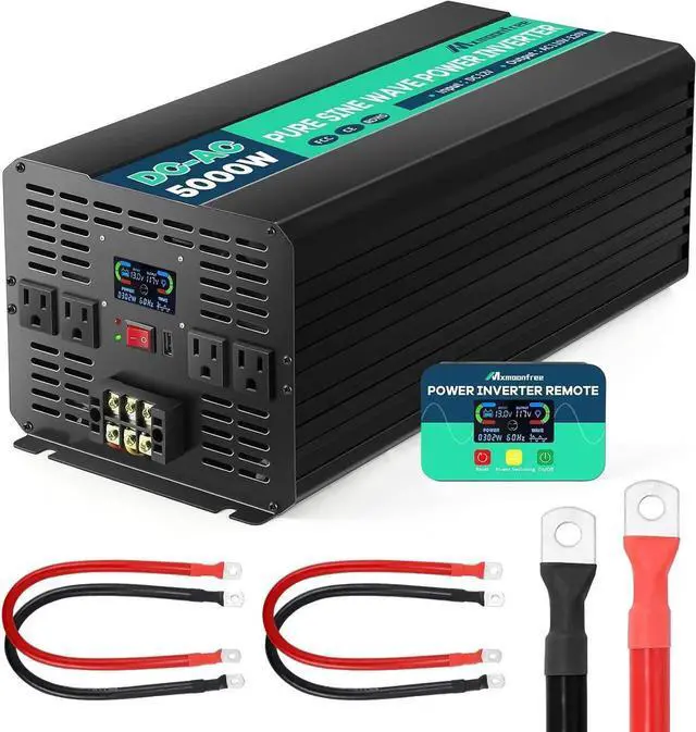 [WIRELESS REMOTE CONTROL] 5000 watt pure sine inverter comes with LCD wireless displayer. The remote control display the input/output voltage, output power and prompt overvoltage, low voltage, overload, short circuit and other situations in time, which is useful for you to grasp the working status of the inverter.