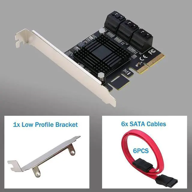 - [Package including] 1x RIITOP SATA PCIe Card 6Ports; 6x SATA Cables; 1x Low-Profile Brack
