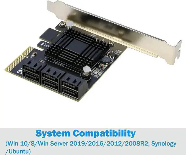 Systems: Windows 10/ 8/ Server 2008R2/ NAS Synology/ Ubuntu/ Linux OSfalse[Package including] 1x RIITOP SATA PCIe Card 6Ports; 6x SATA Cables; 1x Low-Profile Bracketfalse- RIITOP PCIe SATA Card allows you add Extra 6x SATA 3.0 Ports via PCI-e x4/x8/x16 slot to your mainboard, No drivers need. Easy to install, Plug and play