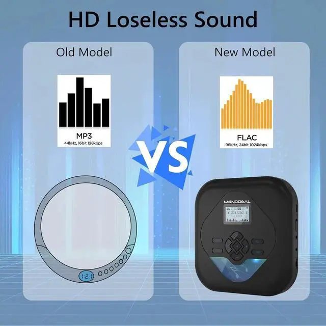 • DSD Technology and Support TF Card:This CD players supported discs format: CD, MP3, CD-R, CD-RW, and HDCD. Music format: FLAC,WAV,CD-DA, MP3, WMA.Our CD player has a micro TF card jack, you can save music files in MP3 format on a TF card and play from this cd player portable.( TF Card is NOT inluded in the package)