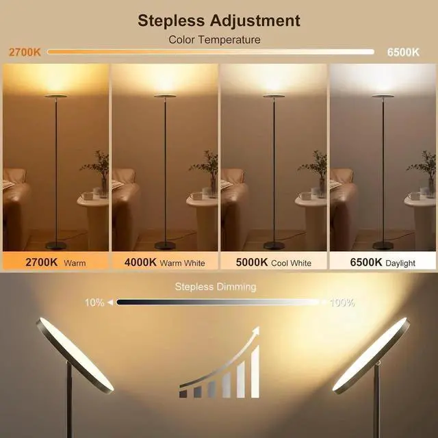 Adjustable Lamp Head: The head of the dimmable stand up lamp supports 350° rotation and 90° up/down flipping; This flexibility allows you to direct light exactly where you need it, illuminating every corner of your room