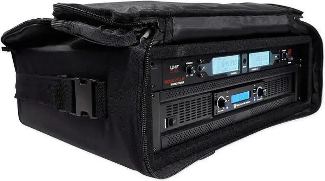 The RRB35 is a bag-style port rack case that holds any 19 standard rack sized DJ, live sound, or recording gear. Our rack bags are made of 800 denier ballistic nylon cove which is military-grade material that will last you a lifetime. The chrome-plated zipper pulls can be locked together for added security. We added outer zippered pockets to store your mics, cs, or other accessories. The RRB35 holds 3U rack spaces with a 16 inch depth.