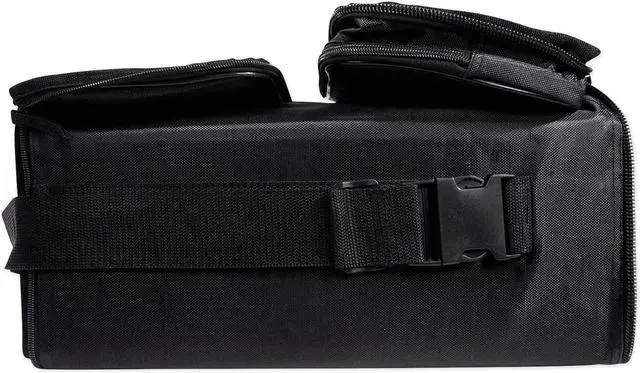 Comfort shoulder strap. Strong Plywood Enclosure Wrapped In Aviation Grade Black Carpet. Black carpeted rack case is remov from the bag