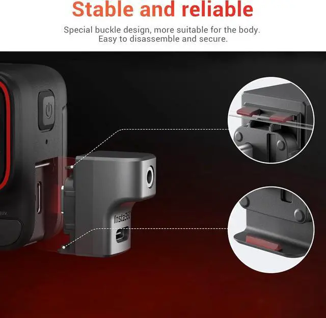 Firmly Fixed: The insta360 ace pro 2 mic adapter is designed to be lightweight and easy to use. Buckle design ensures a secure connection and convenient assembly / disassembly. Insta360 Ace Pro 2