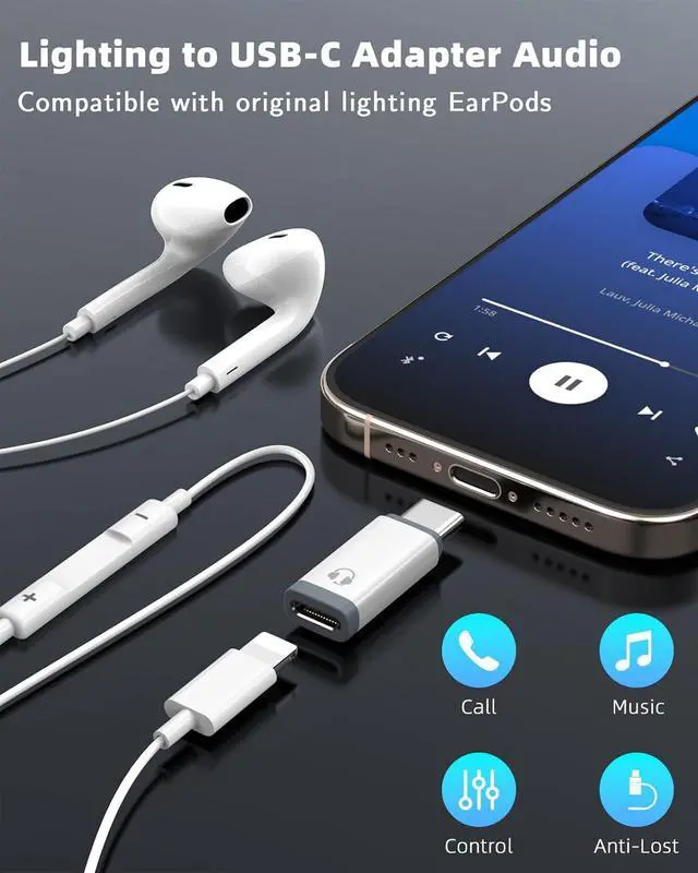 Data Transfer: Compatible with Lightning Earpods ONLY. This Lightning to USB-C adapter lets you connect Lightning EarPods to your iPhone 16/15 series for high-quality audio playback voice calls and video conferencing. It supports in-line controls such as play/pause volume adjustment and call answering.